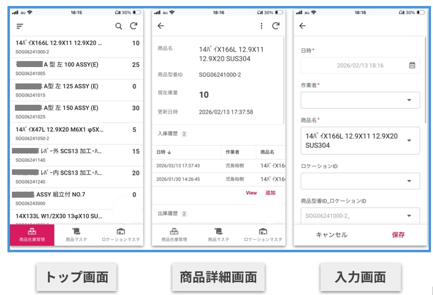 新人でも迷わず操作できる直感的なUIに加え、Googleアカウントと紐付けた操作ログの取得機能や、リアルタイムな在庫動態の通知機能を実装し、運用の透明性を確保しています。