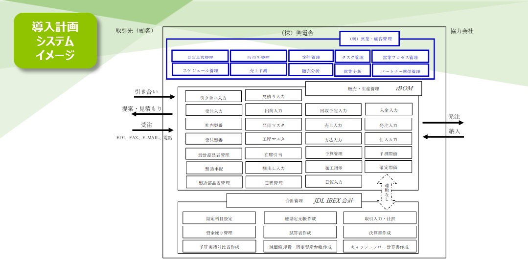 9ヶ月に及ぶ長期プロジェクトでしたが、毎回の打ち合わせに社長や専務を始め、幹部社員の皆さんが出席され、意欲的に取り組んでいただきました。ヒアリングは計17名の方にご協力いただきましたが、同じ質問でも異なる回答が続出し、それが新たな気づきにもつながったものと思料します。 ビジョン策定の際は重苦しい雰囲気の中、出席された幹部の一人から、「社長が腹を括ってもらえれば私たちはそれに協力します。」とコメントがあり、それを契機にプロジェクトが一気に活気づいていったのが印象的でした。 事業戦略策定では、今のやり方に固執することなく、広い視野・柔軟な発想で検討できた点は特筆に値すると思っています。その結果、支える仕組みとして、新たに営業・顧客管理システムを構築する構想に至りました。 DXの成否の鍵は企業の自己変革にあると思います。私たち支援者はその触媒に過ぎません。(株)興電舎様におかれましては是非、持ち前の自己変革力で名実ともに地域を牽引する企業になっていただきたいです。 |