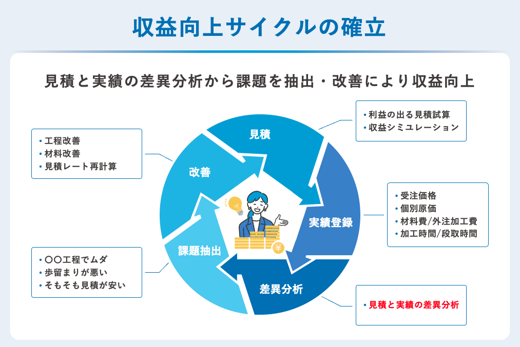 ・社長や経営幹部だけでなく、他の従業員も根拠のある見積を作成できるようになる。