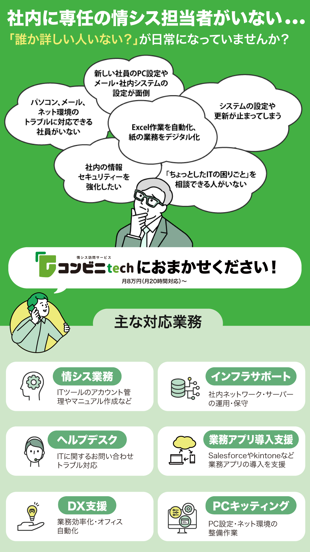 ・ベンダー対応やSaaS導入など、専門知識が必要な領域も代行可能