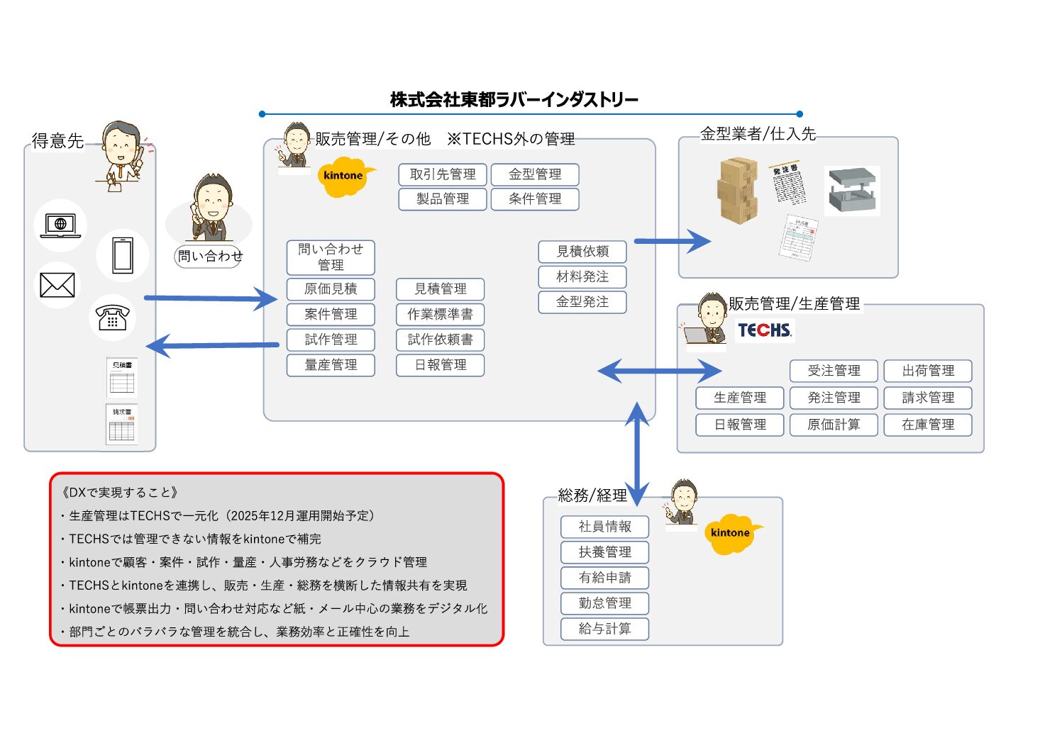 営業活動の属人化を解消し、見積・案件管理を効率化するため、ノーコードツール(kintone)を基盤にDXを推進。