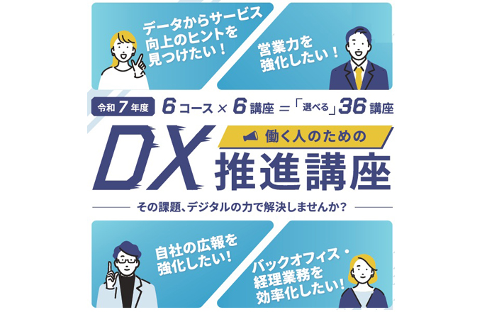 デジタル化で業務の効率化を進めたい県内中小企業にお勤めの方にデジタル化及びデジタル人材の必要性について理解いただくことを目的とした、DX推進講座を開講しています。○DX推進講座 「デジタルで変わる広報... -