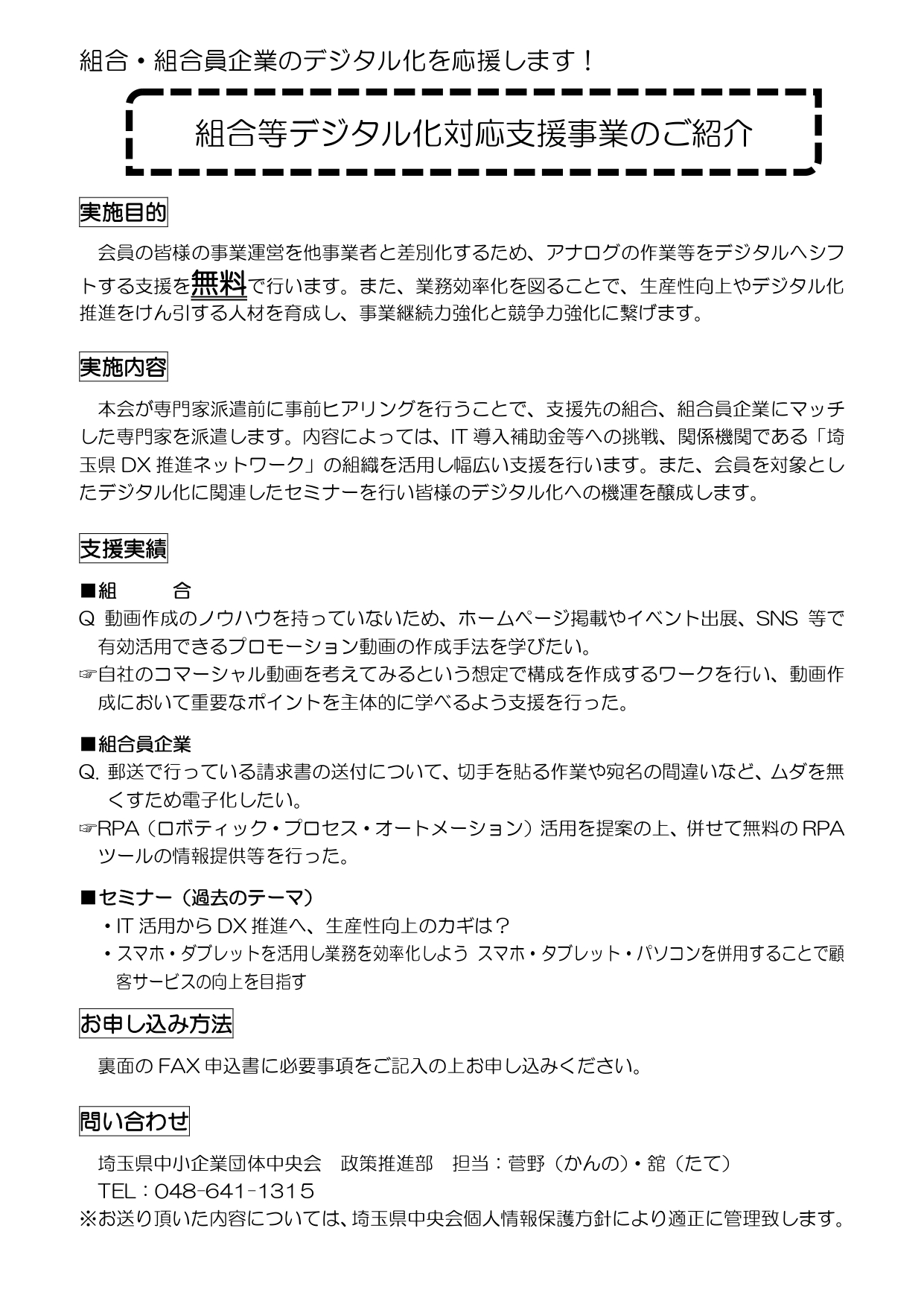 電話番号:048‐641‐1315 FAX:048‐644‐8065