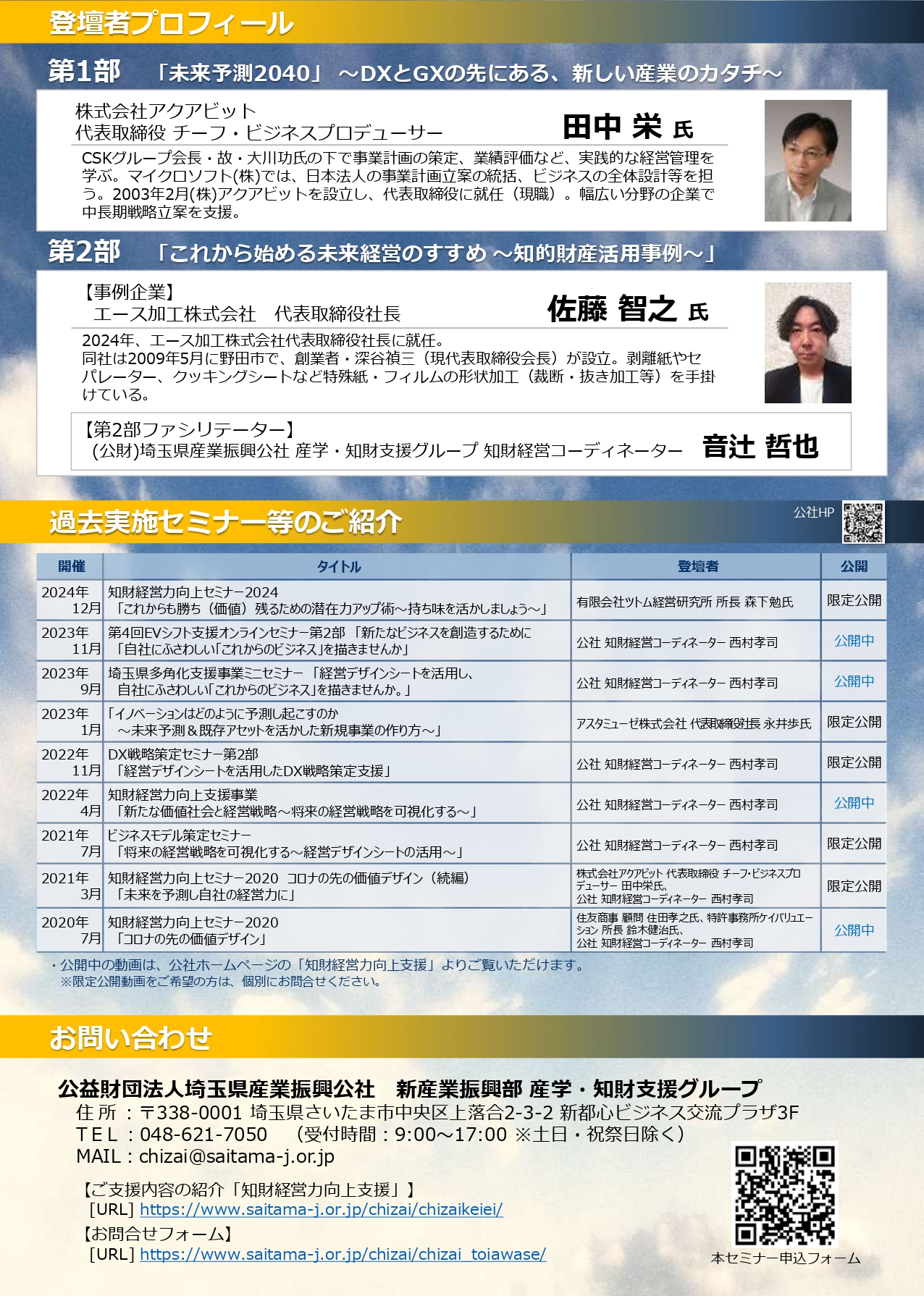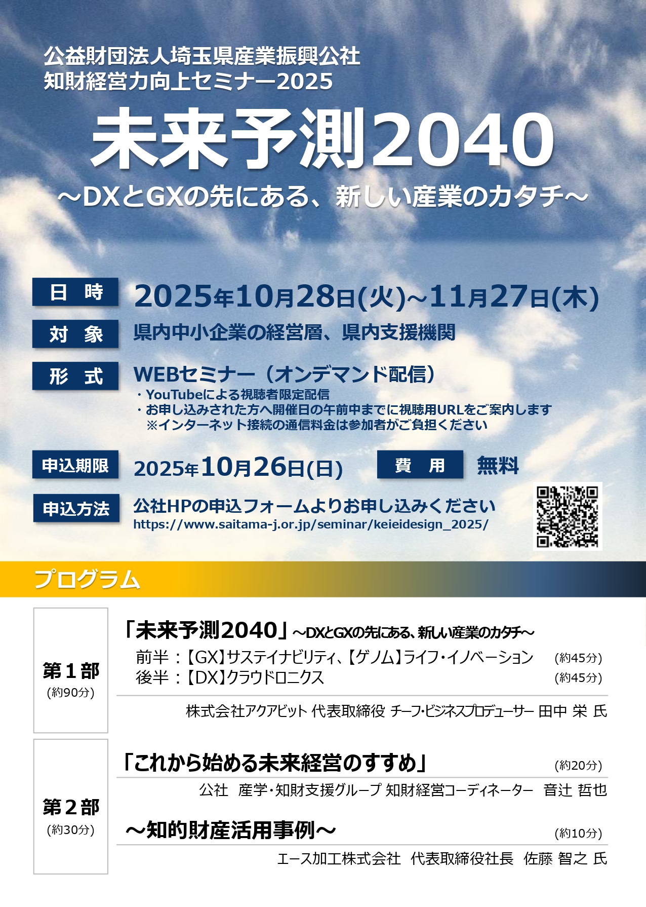 名称: 知財経営力向上セミナー2025 「未来予測2040」~DXとGXの先にある、新しい産業のカタチ~