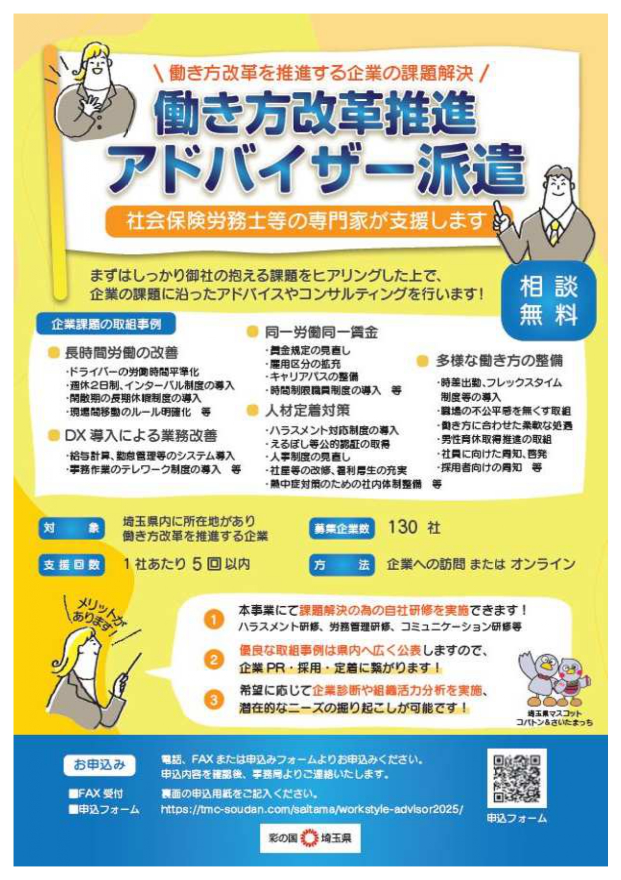 DXの推進に資するテレワークの導入・定着などに取り組む企業に、アドバイザー(社会保険労務士等)を派遣しています。
